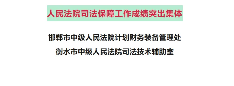 近日,最高人民法院印发《关于对人民法院司法保障工作成绩突出集体和个人予以表扬的通报》,对50个集体及100名个人予以通报表扬。其中,邯郸市中级人民法院计划财务装备管理处集体荣获“人民法院司法保障工作成绩突出集体”。
