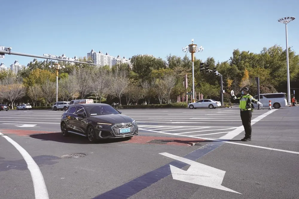 赵昕怡说:“国庆假期,联纺路车流量大,在通行压力较大时,执勤民警会专人指挥西口交通,在有车辆向西行驶时不允许车辆调头。”