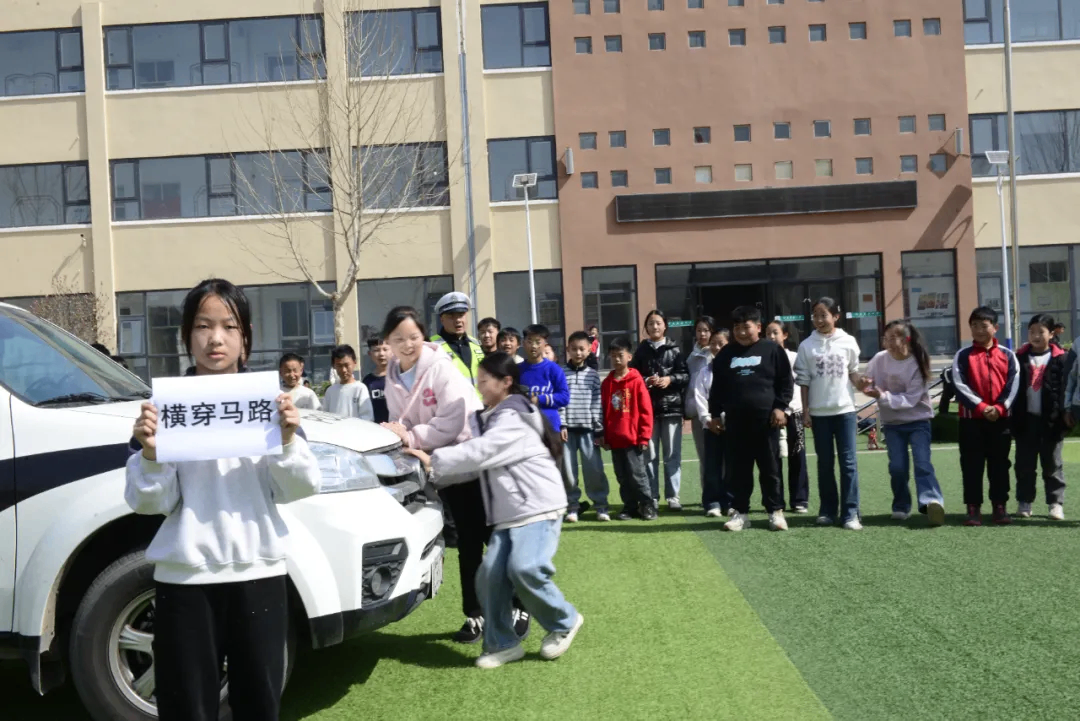 活动中,宣传民警摒弃传统课堂单向讲授模式,在校园操场1:1还原真实道路交通场景,在孩子们好奇又期待的目光中,一场场贴近现实、惊险逼真的交通安全情景模拟正式上演。