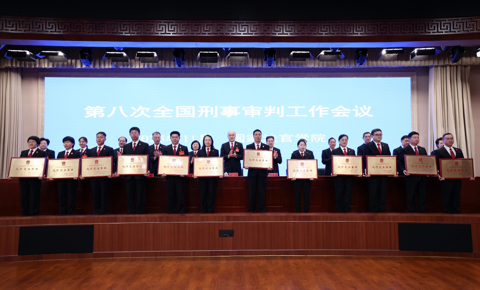 会议为人民法院刑事审判工作成绩突出集体和个人代表颁奖。