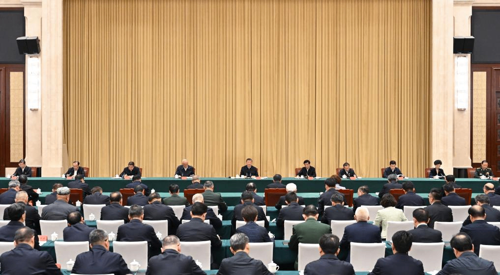 9月24日下午,率中央代表团出席新疆维吾尔自治区成立70周年庆祝活动的中共中央总书记、国家主席、中央军委主席习近平在乌鲁木齐听取新疆维吾尔自治区党委和政府工作汇报,发表了重要讲话。 新华社记者 丁林 摄