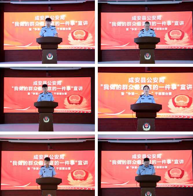 “全心全意为人民服务”是身体力行,是想群众之所想,急群众之所急,解群众之所困。6月21日上午,成安县公安局举办“我做的群众最满意的一件事”宣讲暨“争第一、创唯一”干部擂台赛。局领导、三级高级警长李涛,局党委委员、政工监督室主任任宁宁出席会议。全局民辅警代表共100余人参加会议。