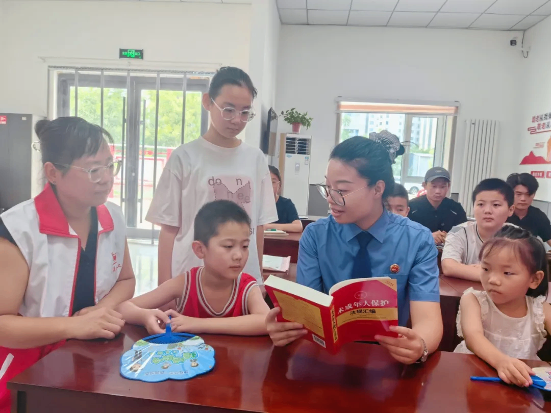 日前,永年区检察院干警联合司法社工、未成年人社会观护员共同走进招贤社区,化身“法治园丁”,带领暑期托管班的孩子们共同学习法律知识。检察干警通过宣讲法律法规、表演情景剧、互动问答、发放宣传品等形式,为孩子们讲解交通安全、网络安全、防溺水、拒绝校园欺凌等知识,增强他们的法律意识和自我保护能力。