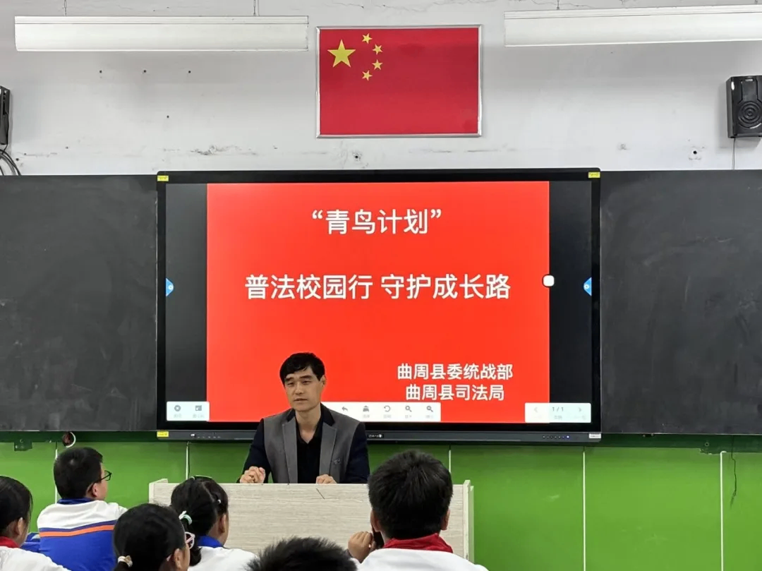为进一步预防未成年人犯罪,加强青少年法治教育,5月8日,曲周县司法局联合县委统战部到郦商小学开展“普法校园行 守护成长路”宣传活动。